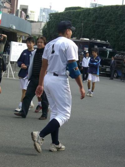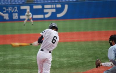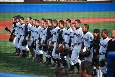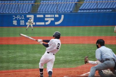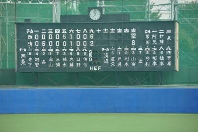8回表 6番 徳永 ピッチャーゴロ 7番 大藤 セカンドゴロ 8番 日野 レフト前ヒット 9番 佐伯 センター前ヒット 2死一,二塁 1番 井下 レフト前ヒット 日野ホームでアウト